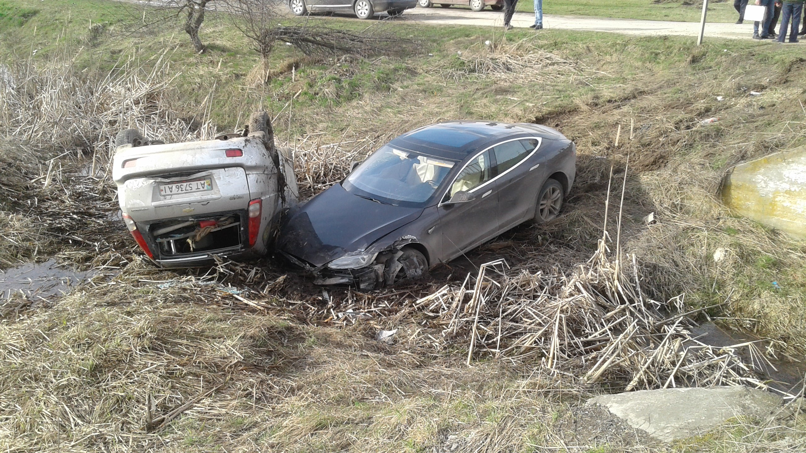Як розповіли свідки у спільноті Типова Отинія, електрокар Tesla Model S рухався по дорозі. В цей час водій Chevrolet Tacuma вирішив розвернутися не звертаючи уваги на авто що їхало дорогою. Водій Tesla не встиг зупинитись і врізався у Chevrolet.