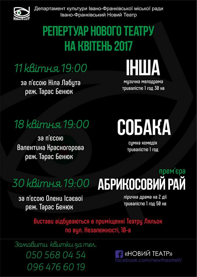 11 квітня 19:00 в приміщенні Театру ляльок "Новий театр" представить прем'єру вистави "ІНША" за мотивами п'єси Ніла Лабута.