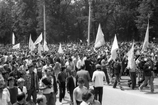 Я наздогнав о. Миколу і ми разом пішли до парку Січинського. В той час масово почали сходитися люди. Вони йшли по вулиці Привокзальній, несучи синьо-жовті прапори.