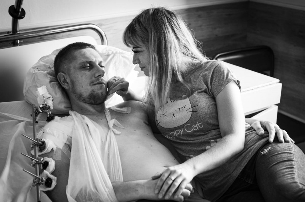 "Хочеться, щоби швидше це все закінчилося, і наша сім'я знову прокидалася вранці разом", - говорить Вікторія Нєдєльчєва. У лікарні вона з чоловіком з перших днів його поранення ось уже п'ятий місяць. Всередині серпня після Дніпра та Запоріжжя подружжя привезли евакпотягом до Франківська.