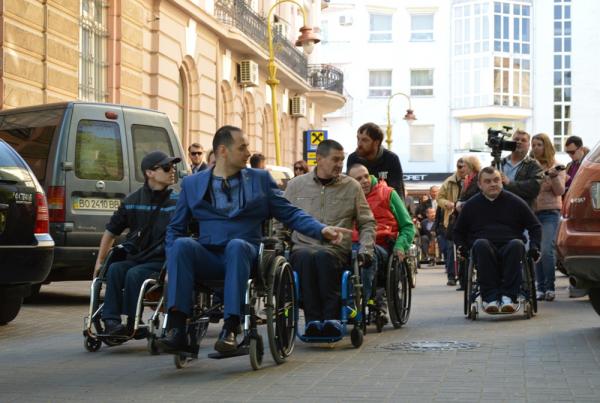 Івано-Франківські чиновники пересіли у інвалідні візки.Таким чином міська влада на власному досвіді відчула з якими труднощами щодня стикаються люди з інвалідністю. Відео ТРК Вежа.