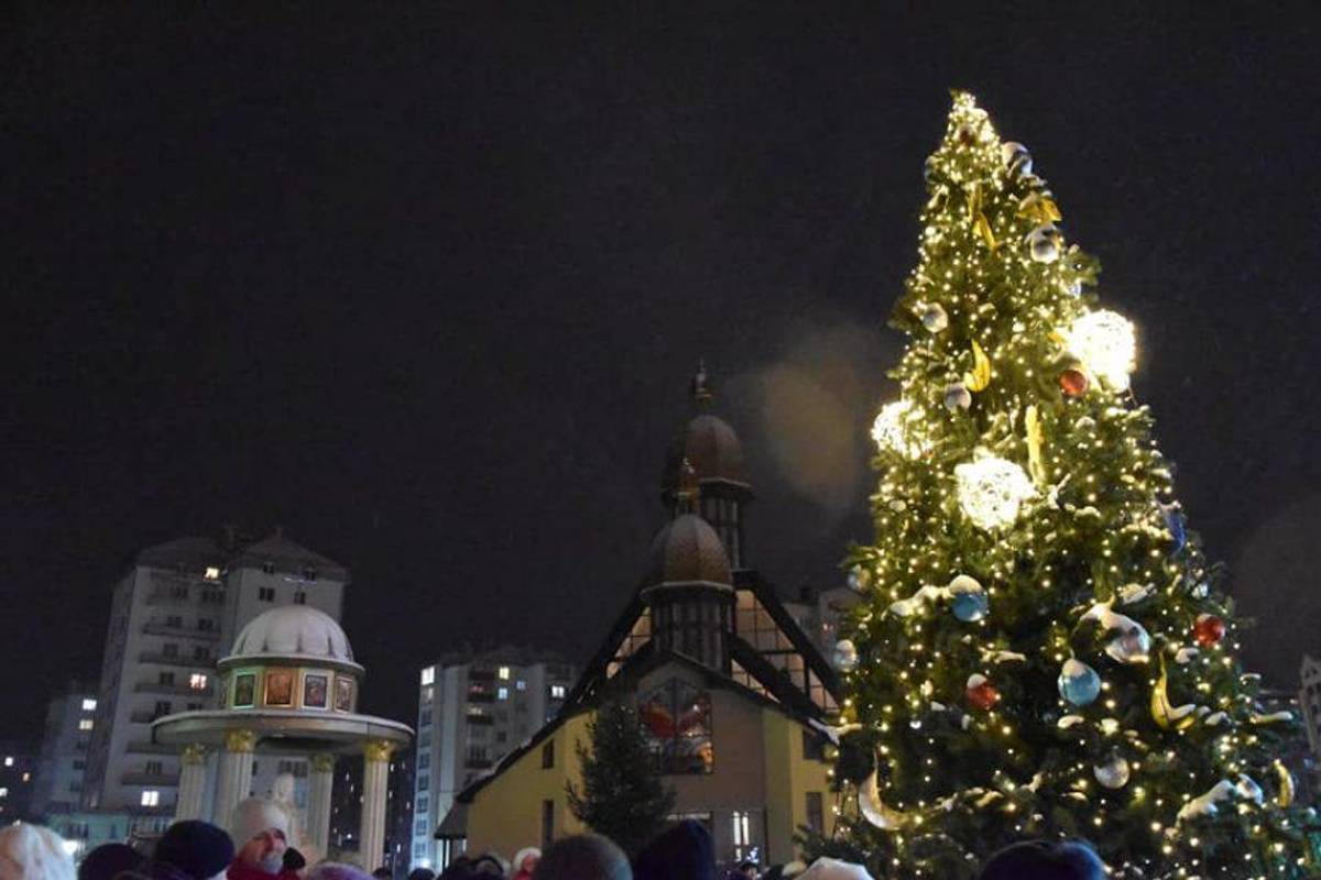Сюди 12-метрову ялинку привезли з Бережницького лісництва. Новорічне дерево прикрасили різнокольоровими кульками. Біля ялинки є фігурки казкових героїв заввишки від 1 до 1,5 метра та велика різдвяна шопка із біблійними персонажами.