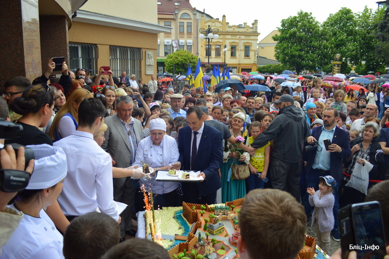 Традиційно урочистості завершились розрізанням іменинного торта. Цьогоріч він виготовлений у вигляді Станіславівської фортеці та важить 150 кілограм, інформує кореспондент Бліц-Інфо.