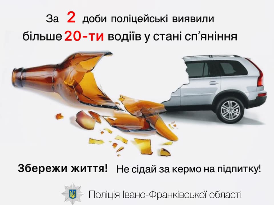 За дві доби прикарпатські поліцейські спіймали більше двадцяти п'яних водіїв