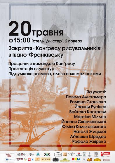 20 травня о 15:00 у готелі «Дністер» на другому поверсі, відбудеться закриття «Конґресу рисувальників» в Івано-Франківську та прощання з командою художників, які провели Конґрес.