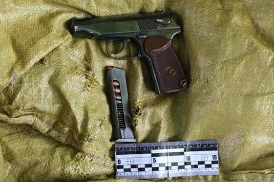 На місце події одразу виїхали оперативні співробітники, які виявили загорнутий у поліетиленовий пакет пістолет з набоями.