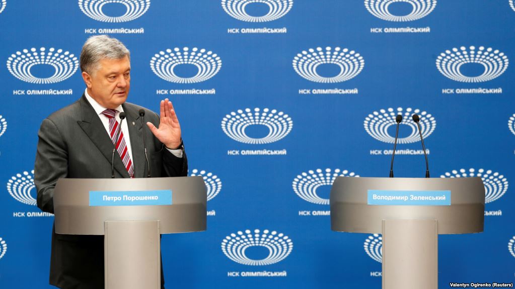 8 квітня Порошенко запросив свого опонента на виборах президента Володимира Зеленського, а також глядачів і журналістів на дебати на НСК «Олімпійський» – 14 квітня. У відповідь Зеленський заявив, що зустріч на стадіоні має відбутися 19 квітня.