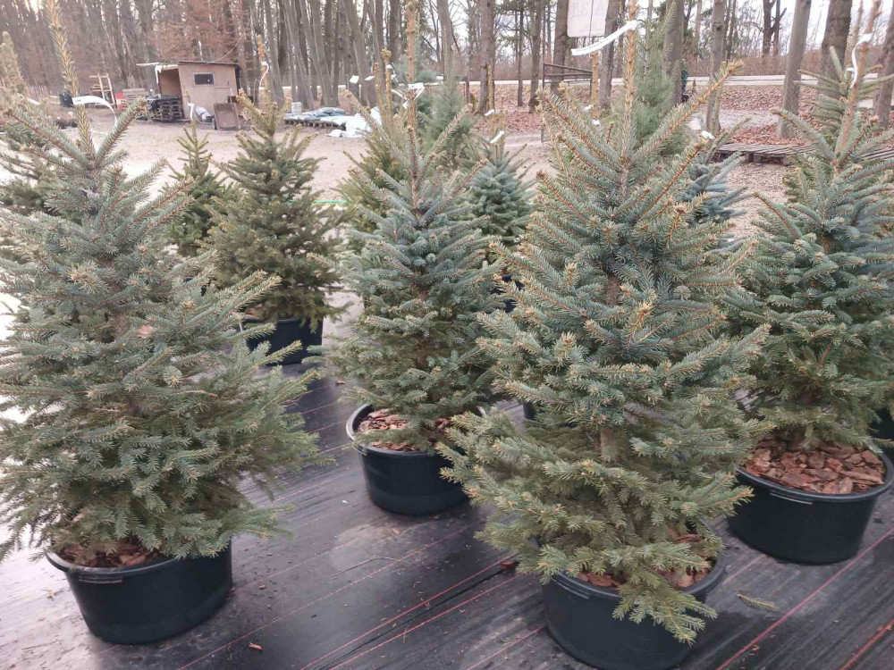 В наявності лісові красуні: ялина блакитна, коніка та ялиця висотою 70 до 200 см з горщиком.