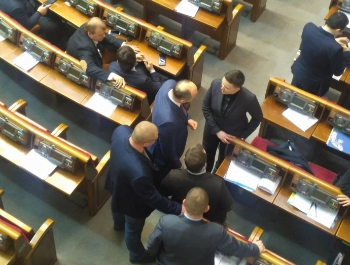 УП пише, що коли Савченко зайняла своє робоче місце в залі й почала слухати виступи депутатів, до неї підійшли кілька депутатів від фракції «Народний фронт», зокрема Андрій Тетерук і Андрій Левус. Після короткої розмови Савченко в супроводі депутатів покинула будівлю Парламенту.