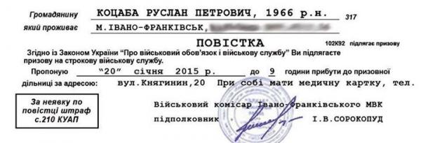 Незважаючи на публічне звернення до Президента України Руслан Коцаба таки отримає повістку від військомату.