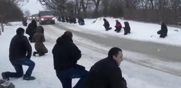 Зворушливе відео: Мешканці Львівщини прощались з «кіборгом», стоячи на колінах у снігу