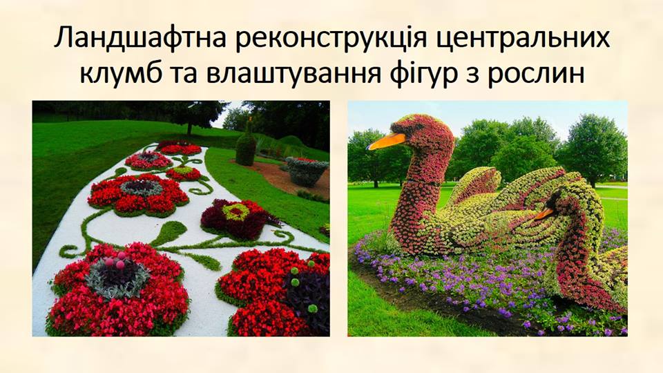 Зокрема, за словами очільниці підприємства Руслани Василюк, у міському парку з’являться нові дитячі та спортивні зони, буде реконструйовано клумби та облаштовано фігури з рослин та квітів, тематичний парк дерев’яних фігур, облаштують пляжні зони.