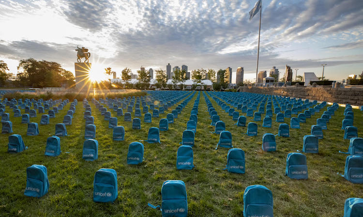 Щоб привернути увагу до дитячих смертей від військових конфліктів за 2018 рік, перед будівлею ООН в Нью-Йорку розмістили 3758 шкільних рюкзаків.