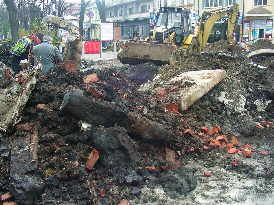 "Площа Міцкевича. Недільна прогулянка. Тільки поверхневий огляд вражає. Старі дубові палі укріплень валів колишньої фортеці.17ст. Величезний культурний шар на місці колишньої фоси при фортечній стіні. Зразки кераміки 18ст. І все на поталу бульдозерам. Хтось хоч покличе археологів? І відомо ж, що це по трасі колишньої фортеці. Хтось пильнує за спадщиною?", - обурюється арххітектор.