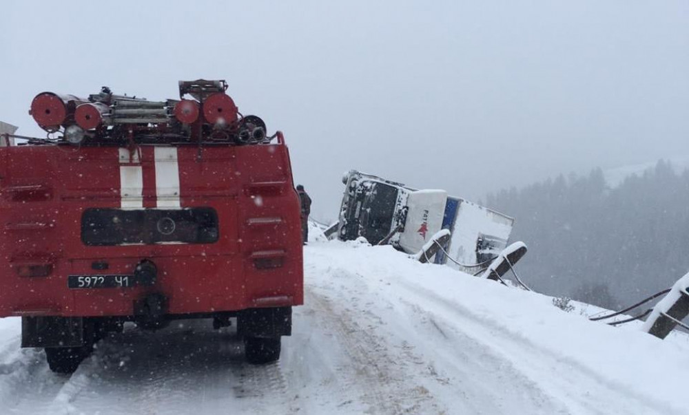 Аварія на Верховинщині: Вантажівка злетіла з дороги та перекинулася