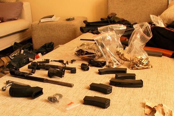 При поверхневому огляді затриманого оперативники виявили і вилучили пістолет австрійського виробництва з трьома магазинами патронів калібру 9 міліметрів. Після цього поліцейські здійснили санкціонований судом обшук у квартирі, яку зловмисник винаймав в Івано-Франківську. Навіть бувалі правоохоронці не можуть пригадати, чи доводилося їм вилучати стільки зброї! Адже знайшли в помешканні з десяток одиниць: автомати, пістолети, гвинтівку, а також глушники, тротилову шашку, магазини, деталі до автоматичної зброї, купу патронів. Усе це «добро» передали на дослідження в експертну службу МВС.