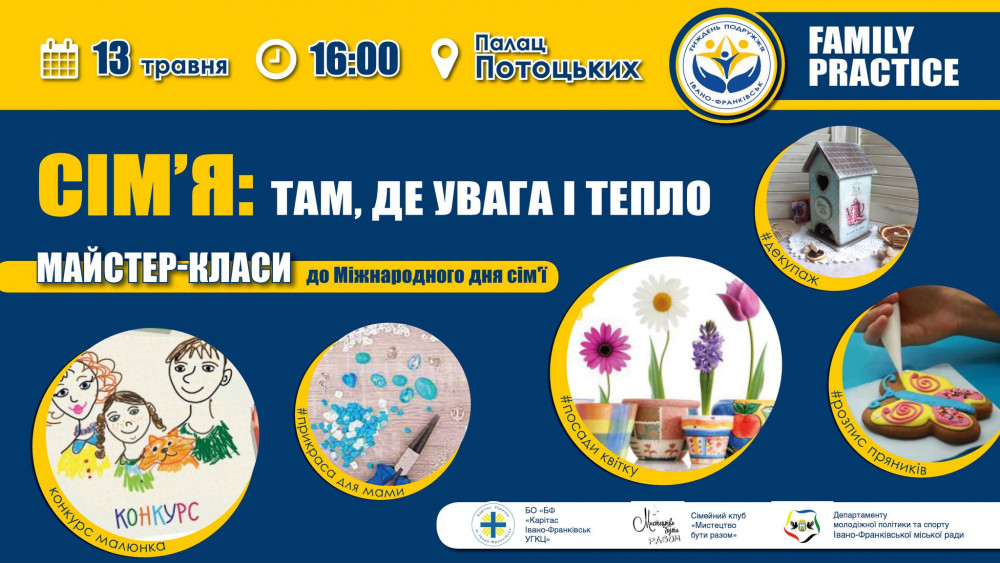 13 травня о 16:00 у Палаці Потоцьких франківські сім'ї запрошують на перший сімейний захід - безкоштовні майстер-класи до Міжнародного дня сім'ї.
