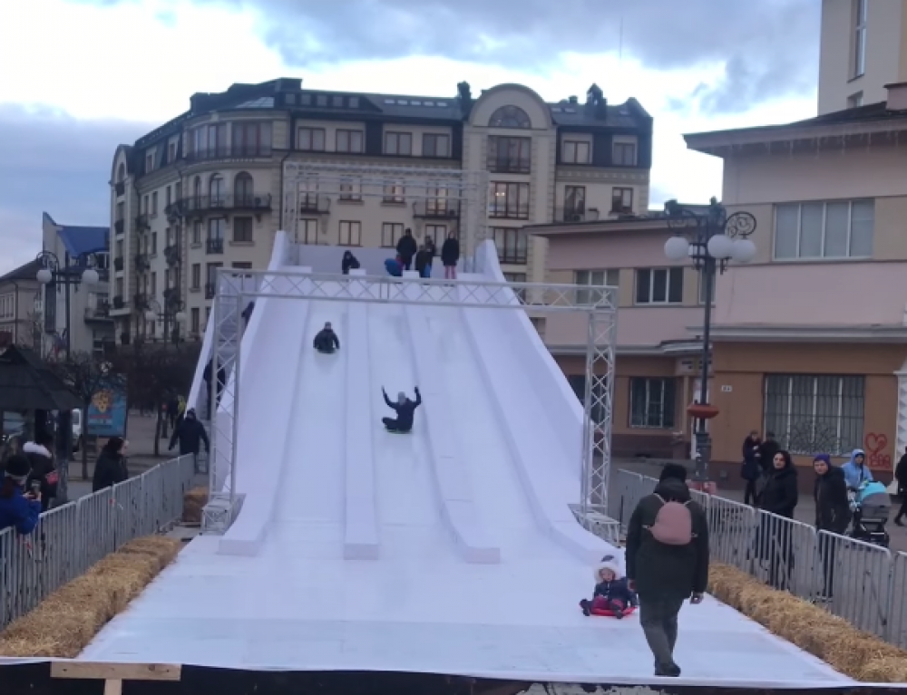 Біля Ратуші запрацювала льодяна гірка. Відома ціна за спуск