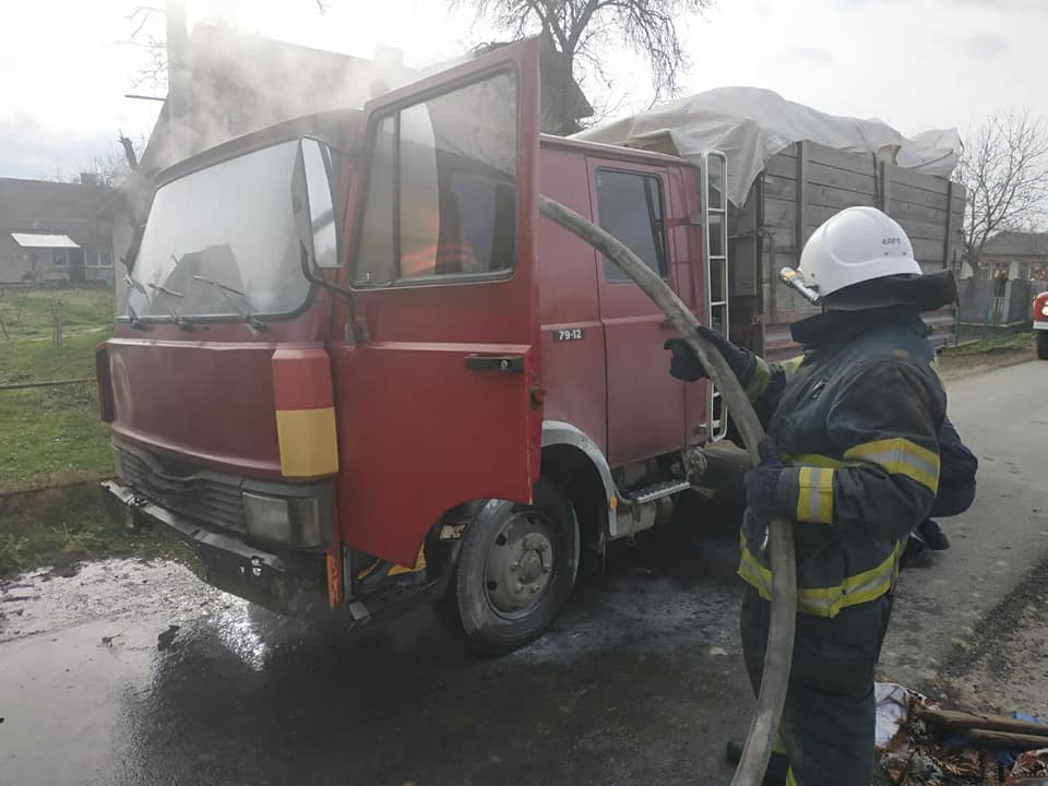 Після прибуття на місце події встановлено, що пожежа виникла в моторному відсіку вантажного автомобіля. О 13:02 пожежу локалізовано, а о 13:07 - ліквідовано. Причина виникнення пожежі та матеріальні збитки встановлюються.