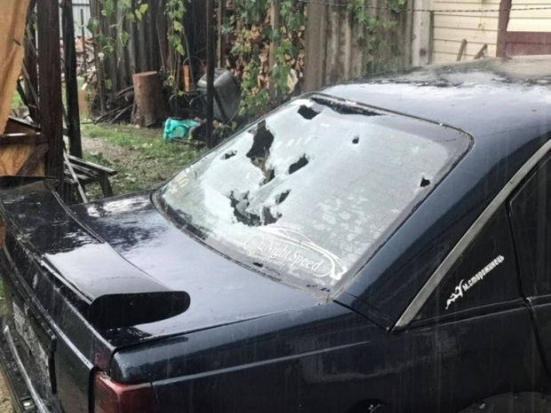 Як передає ТСН, град розміром більше 8 сантиметрів побив наскрізь усі шиферні дахи у центрі міста, понівечив фасади, лише в одній школі міста побив більше 30 вікон, пошкодив увесь автотранспорт поліції - близько десяти автівок, побило навіть світлофори.