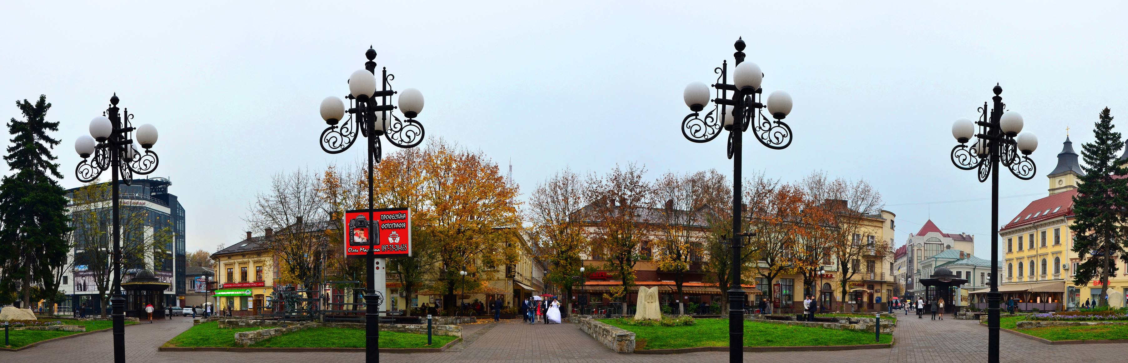 На фото - міський парк та озеро, річка Бистриця та центральні вулиці Івано-Франківська.