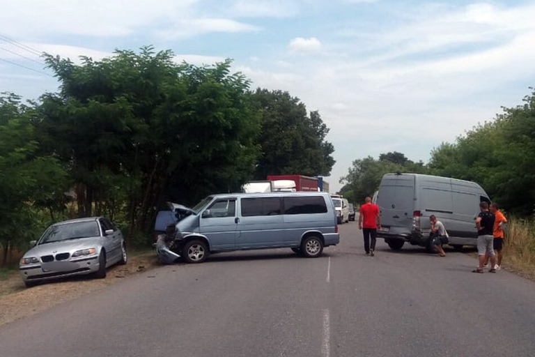 Зокрема 30-річний житель с. Колінківці, Хотинського району, Чернівецької області, керуючи автомобілем «Mercedes-Benz sprinter», не дотримавшись безпечної дистанції, здійснив зіткнення із вищевказаним автомобілем. В свою чергу громадянин, 27-річний житель с. Колінківці, Хотинського району, Чернівецької області, керуючи автомобілем «Mercedes-Benz sprinter», не дотримавшись безпечної дистанції, здійснив зіткнення із вищевказаним Mercedes-Benz sprinter». В цей час водій, 36-річний житель Республіки Молдови, керуючи автомобілем «Volkswagen Caravelle», не дотримавшись безпечної дистанції, здійснив зіткнення із вище вказаним автомобілем, після чого виїхав на смугу зустрічного руху, де допустив зіткнення з автомобілем «ВАЗ 2104», під керуванням громадянина, 65-річного жителя с. Устя, Снятинського району.