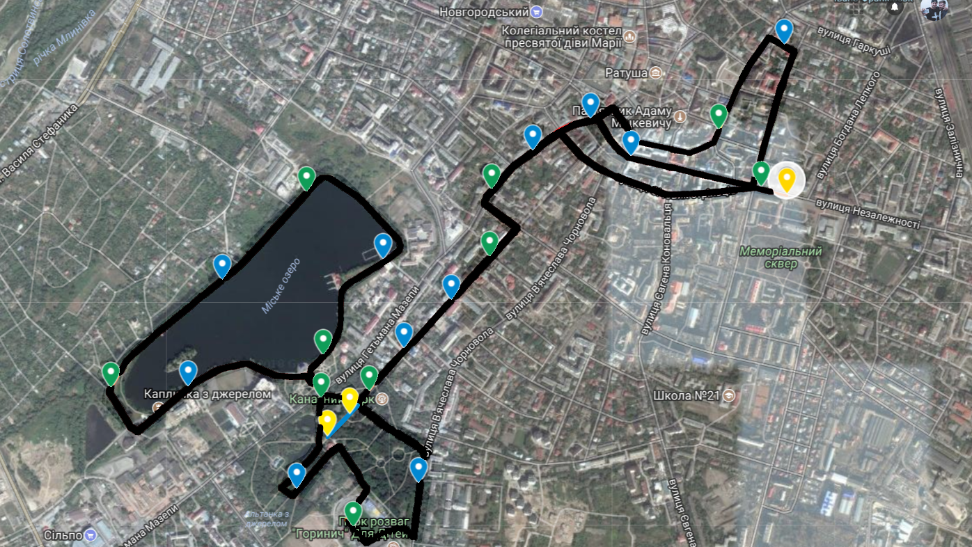 парк ім. Т. Шевченка – міське озеро – парк ім. Т. Шевченка – стадіон «Рух» – вул. Чорновола (пішохідна частина) – парк ім. Т. Шевченка –