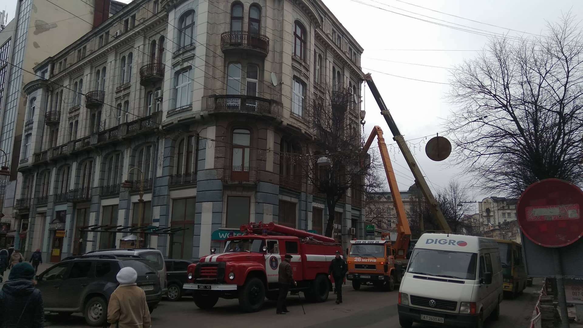 Зокрема демонтують аварійні огородження на балконах верхніх поверхів. Через роботи рух на Січових стрільців значно ускладнений.