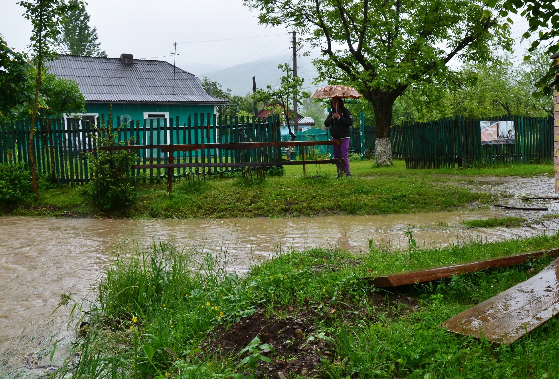 "На даний час 16.00.(30.05.19р.) на наше подвір"я потічок не влився ,а половину городу і саду знову затопив. с. Добротів Надвірнянський р-н Івано-Франківська обл", - Василь Бакота.