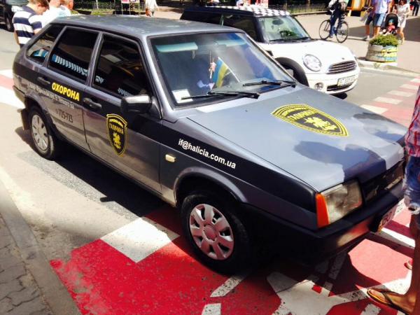 Працівників охоронної фірми "Галичина" зловили на порушенні правил дорожнього руху. Охоронці залишили автівку фактично на пішохідниму переході, що на початку вулиці Грушевського.