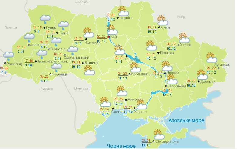 25 та 26 вересня на території України - без опадів, мінлива хмарність.