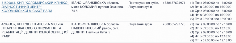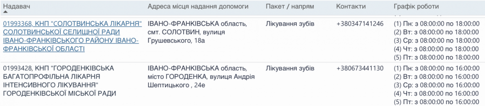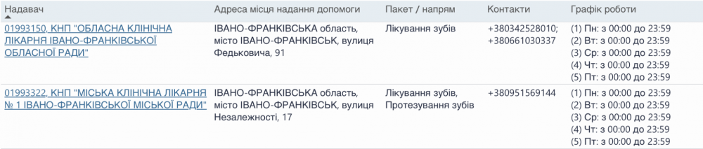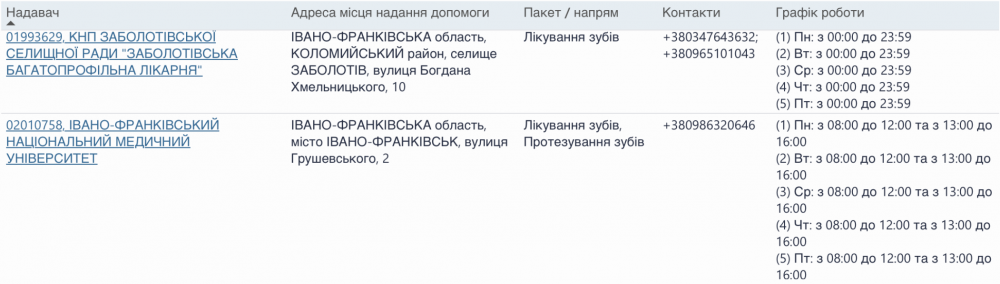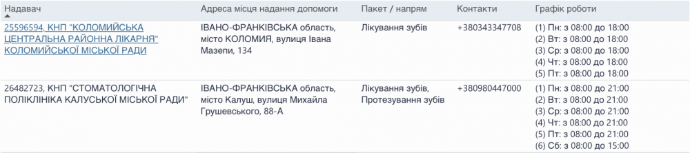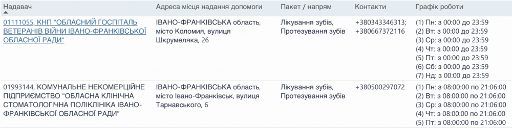 Послуги зуболікування та зубопротезування доступні у 14 медзакладах Прикарпаття, що мають договір із НСЗУ за цим напрямом: