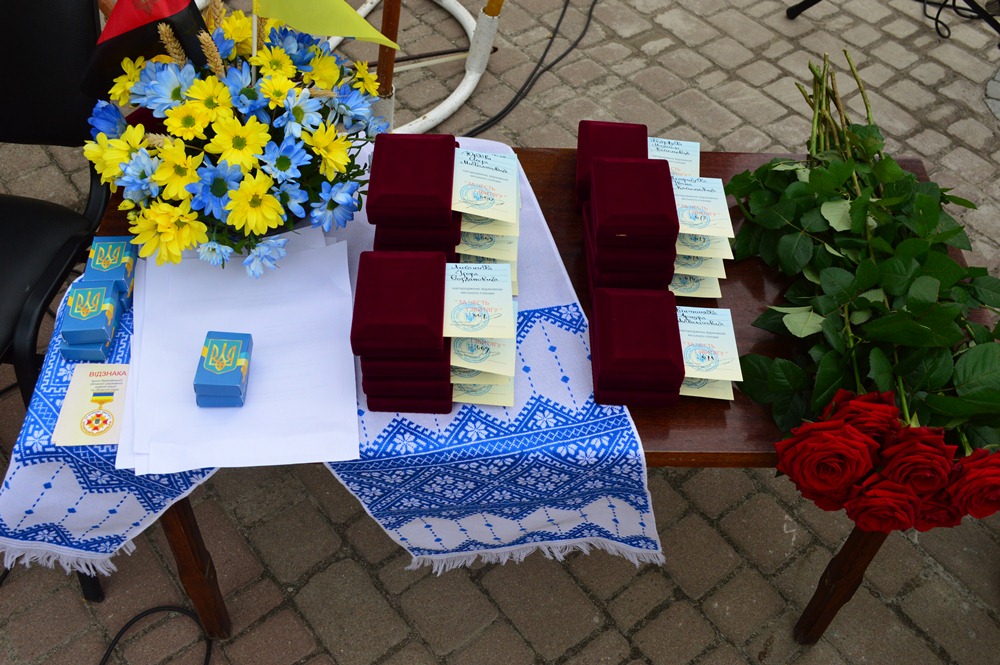 Після відкриття пам'ятника міський голова вручив нагороди рідним загиблих на війні. Як наголосив Руслан Марцінків, таких родин у місті є тридцять одна.