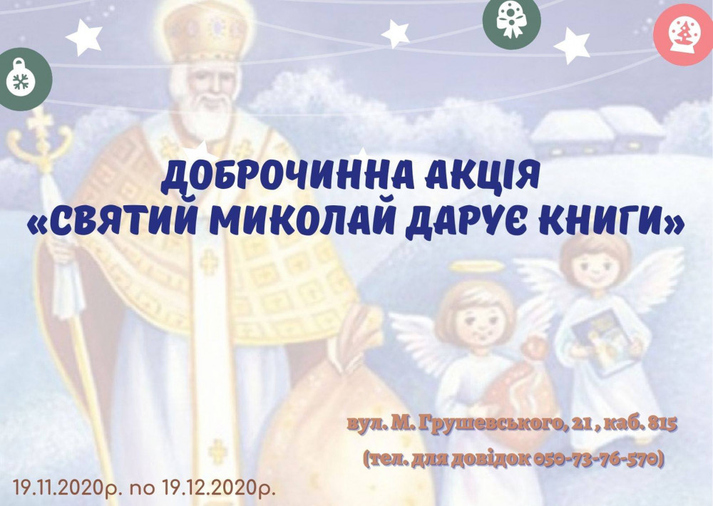 Департамент освіти та науки Івано-Франківської міської ради спільно з Службою у справах дітей виконавчого комітету Івано-Франківської міської ради та дитячо-юнацьким пластовим центром започатковує доброчинну акцію «Святий Миколай дарує книги».