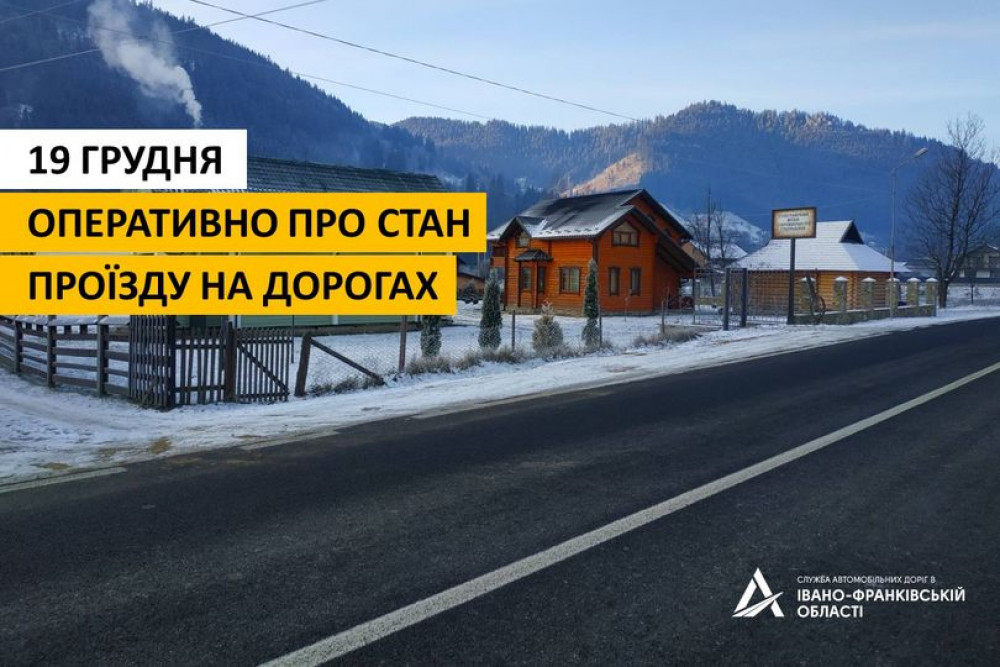 Станом на ранок 19 грудня покриття доріг державного значення Івано-Франківщини сухе та частково мокре.