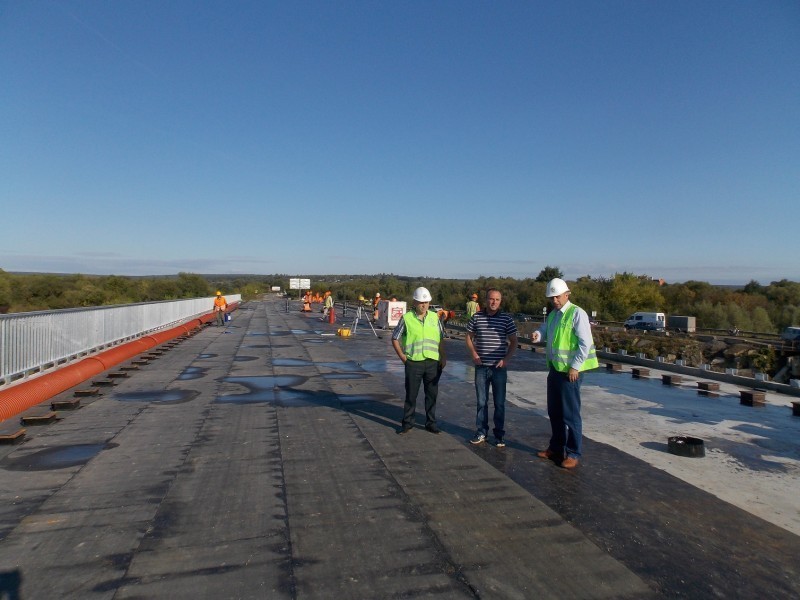 Дорожники виконують роботи по влаштуванню гідроізоляції, влаштування перильного огородження та з'єднань мосту з підходами.