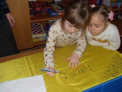 Діти групи «Чомусики» ДНЗ №10 «Катруся» спільно із вихователями долучилися до благодійної акції. Свої побажання бійцям полку дошкільнята написали на прапорі: дякували за мужність, силу духу. На зустрічі вихованці передали бійцям прапор як національний символ перемоги.