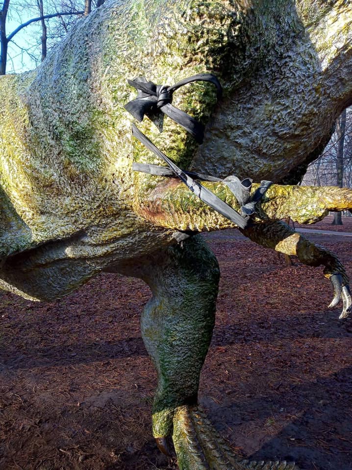 Динозавру з парку відремонтували лапку. Франківців просять не торкатись до неї