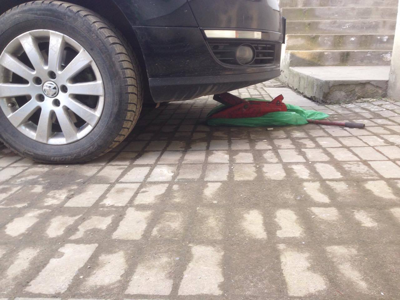 "Мала "веселу історію" Взяла я в свого братєльніка машину VW Passat на кілька днів, поки мій Скудо в ремонті. На ніч припаркувала під своїм домом на прибудинковій стоянці. А сьогодні вдень застала таку картину: машина піднята на домкраті, відсутні двірники, повністю відсутні колісні болти зліва на передньому колесі, і один болт (секретний) на задньому. Працювали професіонали, бо зуміли відкрутити навіть секретні болти. Але щось їм завадило доробити справу до кінця. Франківчани, пильнуйте свої авто", - написала жінка.