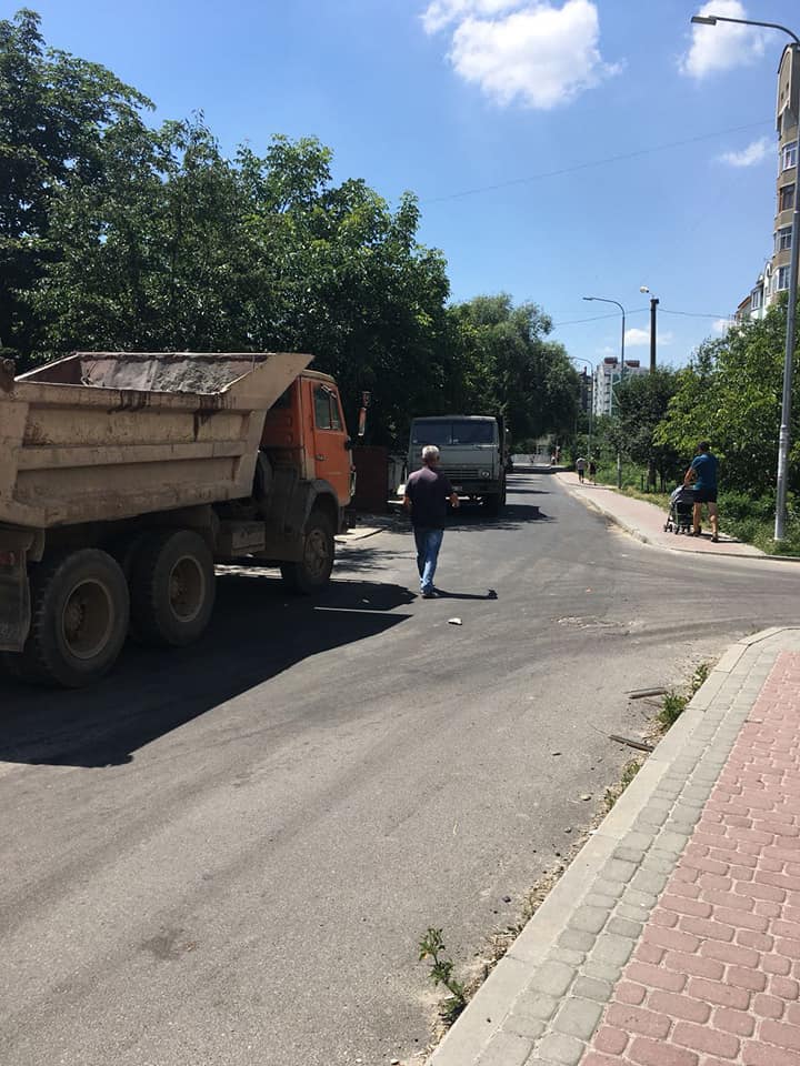 Тож, обурені мешканці Тролейбусної-Хіміків взялись облаштовувати сквер на території зеленої зони та блокувати дорогу, щоб техніка БК "Вертикаль" не проїжджала.
