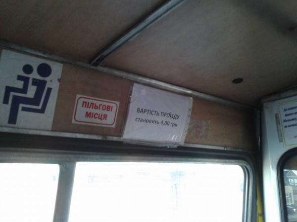 "Маршрут 23. Сьогодні зранку. У салоні новий ксерокс про вартість проїзду у розмірі 4 грн. У водія ні футболки, ні бейджика, ні нових квитків. Заплатив 4 грн. Отримав старий квиток за 3.5 грн. Дружно усім колективом, що їхав на той час, морально тиснули на водія за таке неодобство. Відповідь - я нічого не знаю, квитків нових не отримав. Усі питання до власника. І водія шкода, бо дійсно не винен, але і вимагати виконання норм треба", - зауважує хлопець.