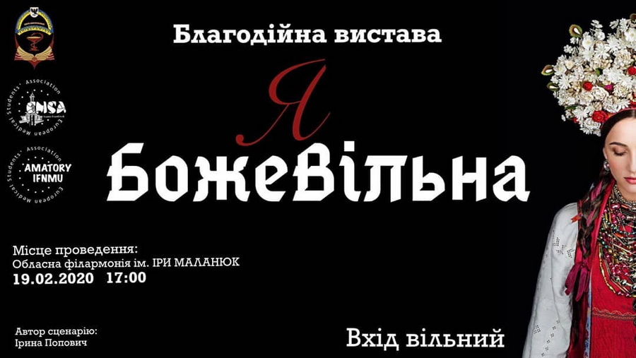 У середу, 19 лютого, о 17:00 в концертній залі івано-франківської обласної філармонії відбудеться благодійна вистава «БожеЯВільна»