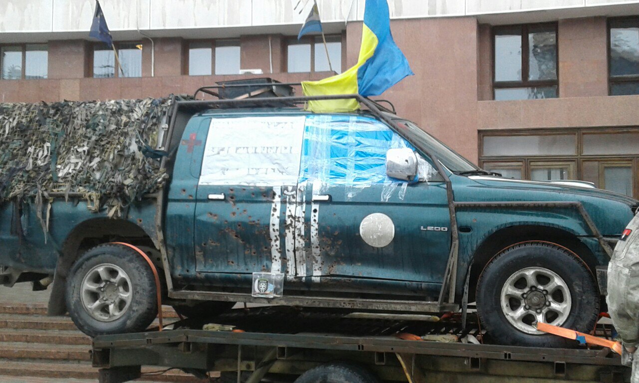 «Виставляючи машину під адміністрацією, хочемо нагадати всім, що війна нікуди не поділася, вона триває і зовсім поруч», - зауважує Мороз.