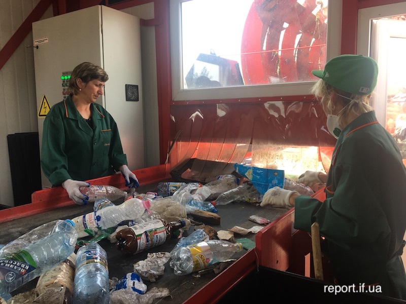 «Два перші пости відбирають папір і картон. Наступні два – білу ПЕТ-пляшку, ще два – голубу, наступні два – кольорову, – коментує процес директор КП «Полігон» Юрій Мороз. – Останні сортують скло. Наприкінці магніт фільтрує метал. Відсортоване сміття будемо поки що зберігати на полігоні. А коли назбираємо достатньо, то вивеземо виробникам на схід. Там приймають дорожче».