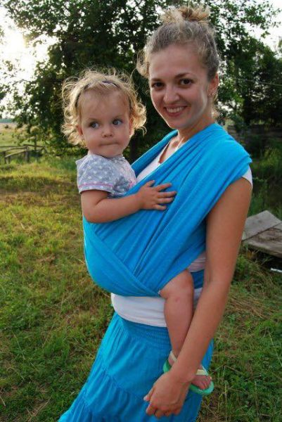 «Мій синочок Наум народився у 2012 році, і ми зразу ж купили слінг з кільцями. Потім був ерго-рюкзак. Коли ми переїхали в Івано-Франківськ у 2014 році, нашій лялечці Іларії був місяць, і ми зразу були в слінгу. Ми інакше не могли бути – постійний плач, коліки, тільки в слінгу ми спали. Ні про яку коляску не могло бути й мови. Руки не варіант, так як і мені було б важко, я ж за активним братиком, якому було на той час 2 роки і 4 місяці, бігала по майданчику. Це дуже приємні спогади!