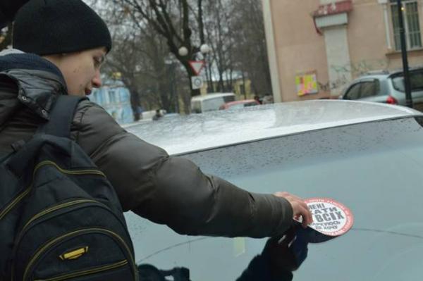 Активісти клеїли традиційні стопхамівські наклейки, на кшталт: "Мені чхати на всіх, паркуюсь, де хочу!" на лобове скло автомобілів, які припарковані з порушенням Правил дорожнього руху. Державтоінспектори супроводжували активістів та роз'яснювали водіям, як правильно паркуватися не порушуючи Правила дорожнього руху.