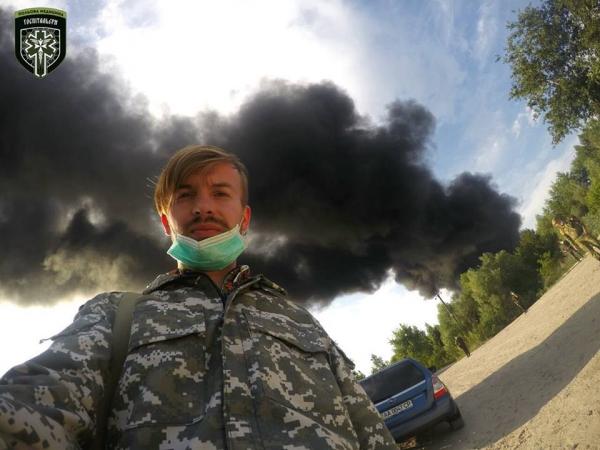 Учасник франківського гурту "Кораллі" у складі Госпітальєрів ДУК від учора чергує біля палаючої Нафтобази БРСМ у Василькові.