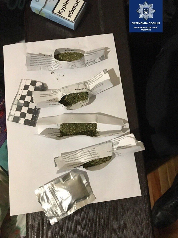 Згідно зі статтею 34 ЗУ "Про Національно поліцію" охоронці порядку провели поверхневу перевірку в ході якої було виявлено 4 паперові згортки із зеленою подрібненою речовиною рослинного походження та 1 zip-пакет з білою порошкоподібною речовиною, схожою на наркотичну.