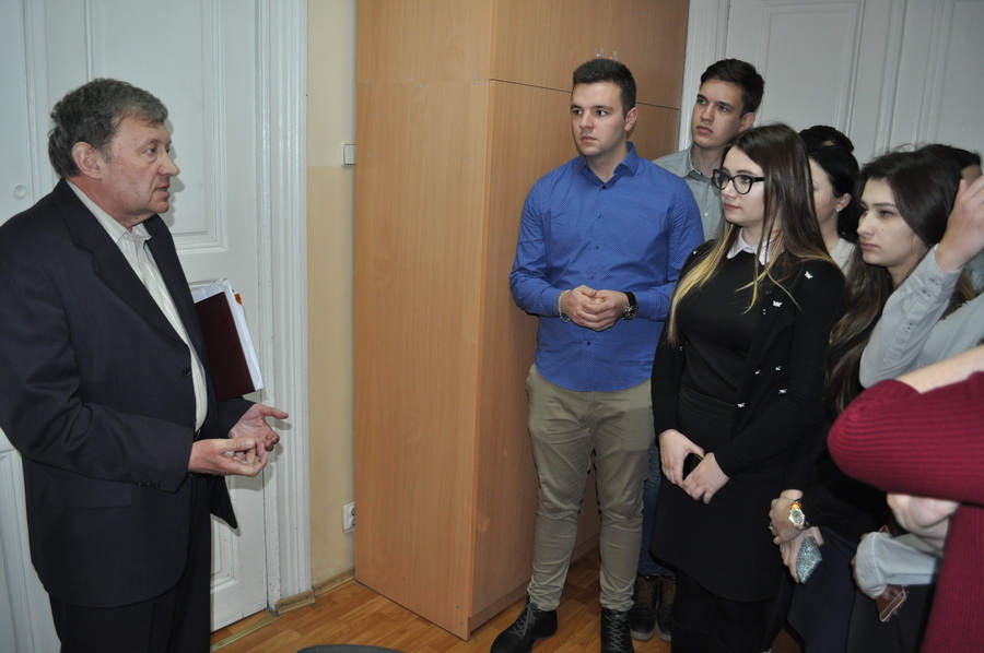 Заступник ректора з кадрових питань Борис Мязін провів студентам невеличку екскурсію відділом кадрів університету, де вони на власні очі побачили масштаби складної і клопіткої роботи з документообігу, яка щодня відбувається у виші. Заглянули молоді люди й до бухгалтерії.