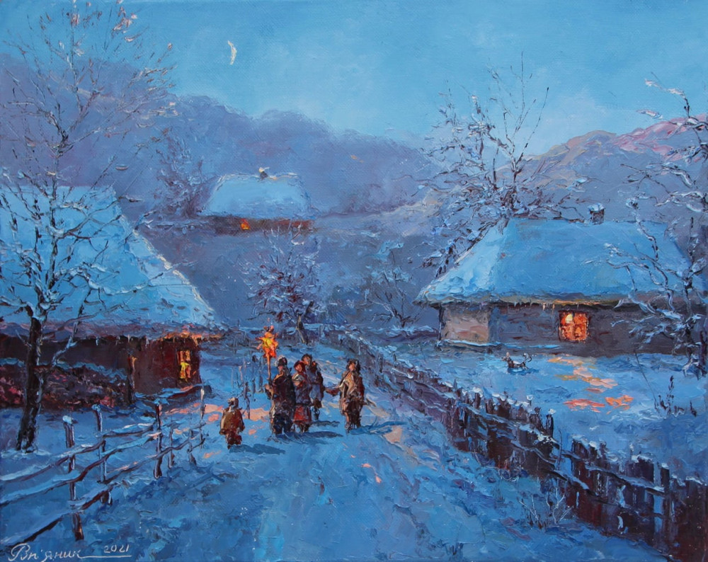 Ігор Роп'яник, "Колядники", полотно, олія, 40х50 см, 2020р.
